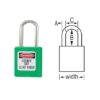 The Master Lock No. S31PRP Zenex™ Thermoplastic Safety Padlock features a 1-3/8in (35mm) wide plastic purple body and a 1-1/2in (38mm) tall, 3/16in (5mm) diameter Marine grade 316 stainless steel shackle for superior corrosion resistance. Ideal for corrosive environments, lock body stands up to chemicals, temperature extremes and is UV stable. Designed exclusively for Lockout/Tagout applications the durable, lightweight, lock body is easy to carry and padlock features high security, reserved-for-safety cylinder with key retaining, to ensure padlock is not left unlocked.